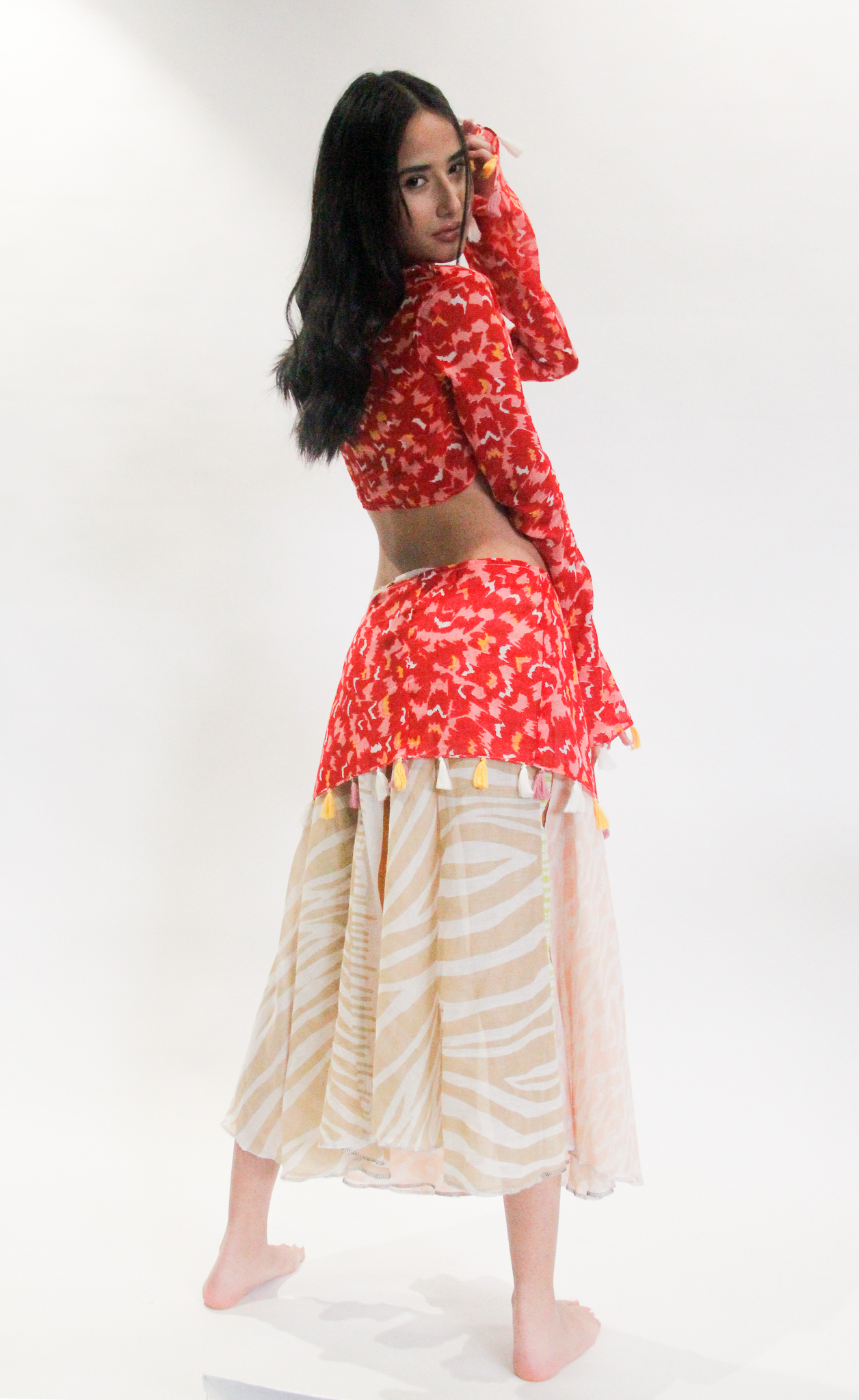 סט חולצת קרופ וחצאית גדילים